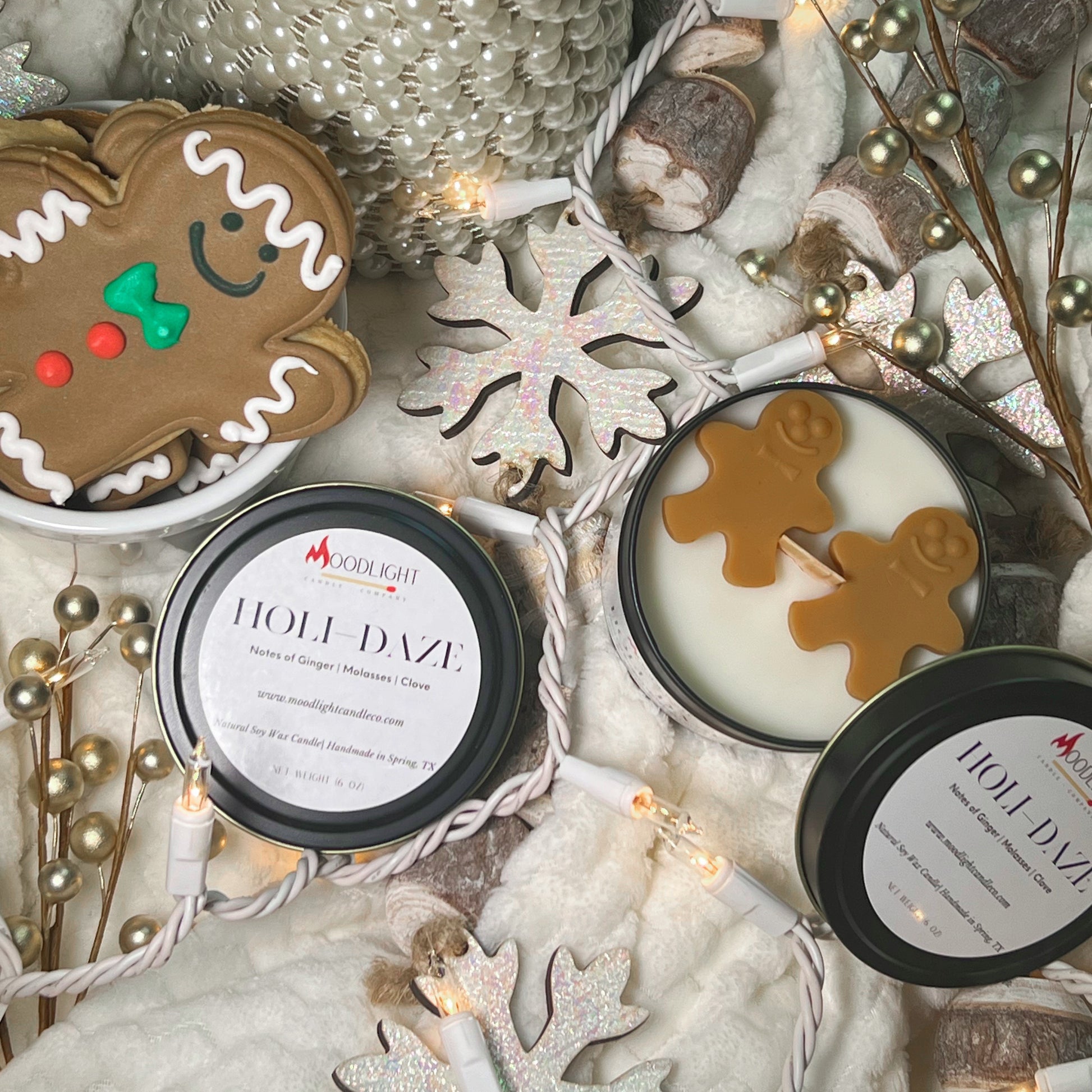 Holi-Daze blends sweet ginger with rich molasses and warm clove—a scent that feels like baking traditions and cozy gatherings. Light this when you want to wrap your space in holiday warmth, whether you're hosting everyone or just savoring a quiet winter night.