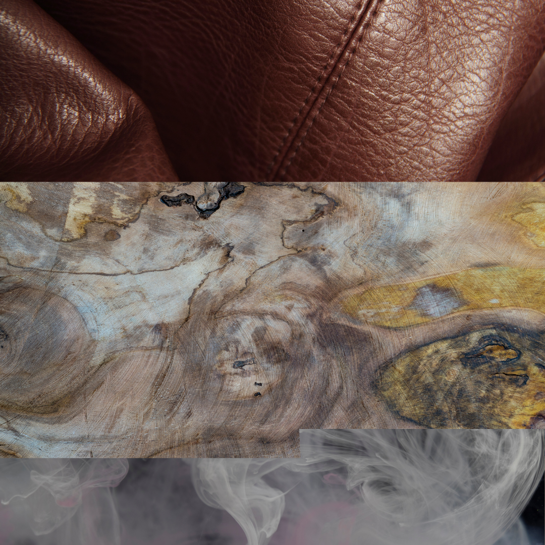 - Fragrance Notes: leather + teakwood + smoke